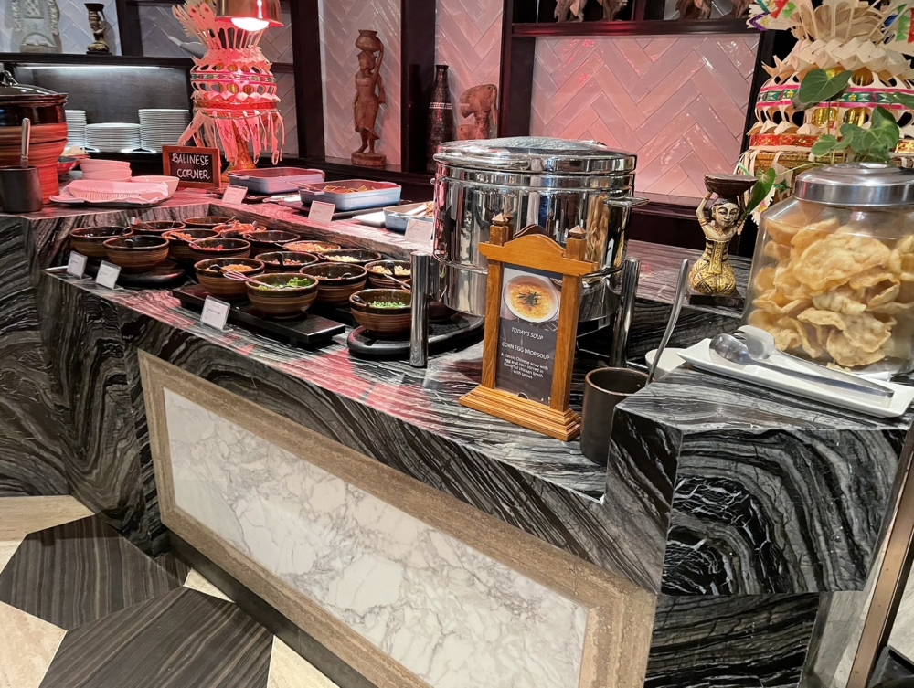 朝食はブュッフェ形式で数多くの料理から選ぶことが出来ました。卵料理は注文でき、その場で出来立てのものをテーブルまでと届けていただけます。パンの種類も豊富でインドネシア料理以外も楽しむことができます。夕食はプールサイドのレストランでインドネシア料理を頂きました。ホテルのレストランの為、衛生面等気にする方にもおすすめです。